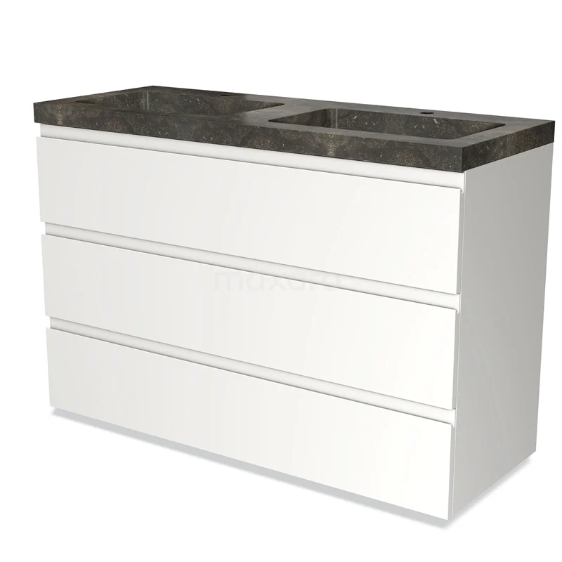 Modulo Bathroom furniture with sink | 120 cm Matte white Handle-less front Natural stone 3 drawers