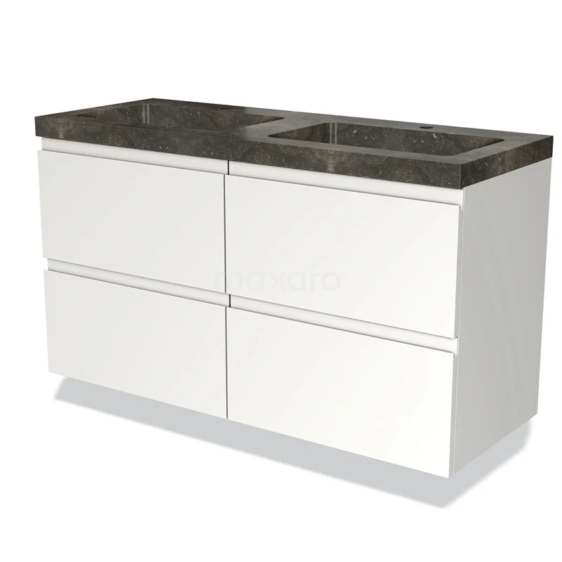 Modulo Bathroom furniture with sink | 120 cm Matte white Handle-less front Natural stone 4 drawers