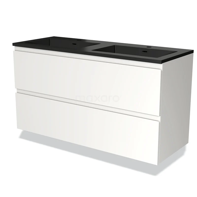 Modulo Bathroom furniture with sink | 120 cm Matte white Handle-less front Quartz 2 Stacked drawers