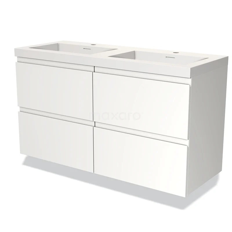Modulo Bathroom furniture with sink | 120 cm Matte white Handle-less front Solid surface 4 drawers