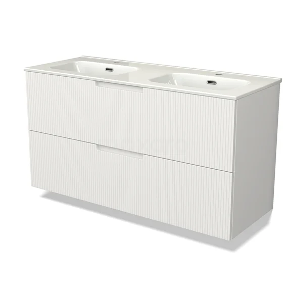 Modulo Bathroom furniture with sink | 120 cm Matte white Line front Ceramic 2 Stacked drawers