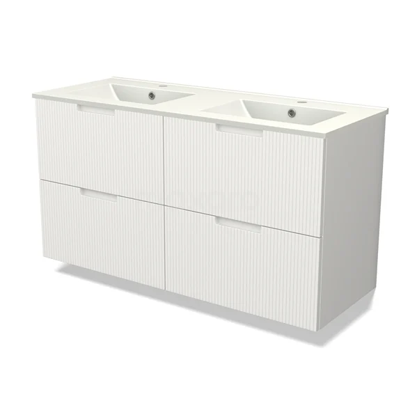 Modulo Bathroom furniture with sink | 120 cm Matte white Line front Ceramic 4 drawers