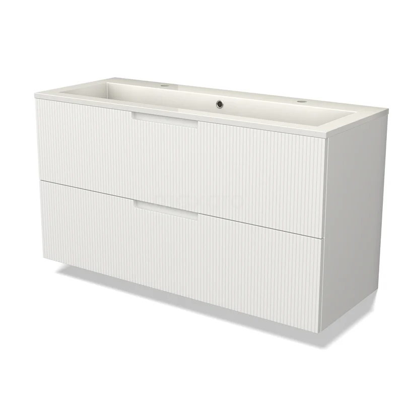 Modulo Bathroom furniture with sink | 120 cm Matte white Line front Mineral marble 2 Stacked drawers