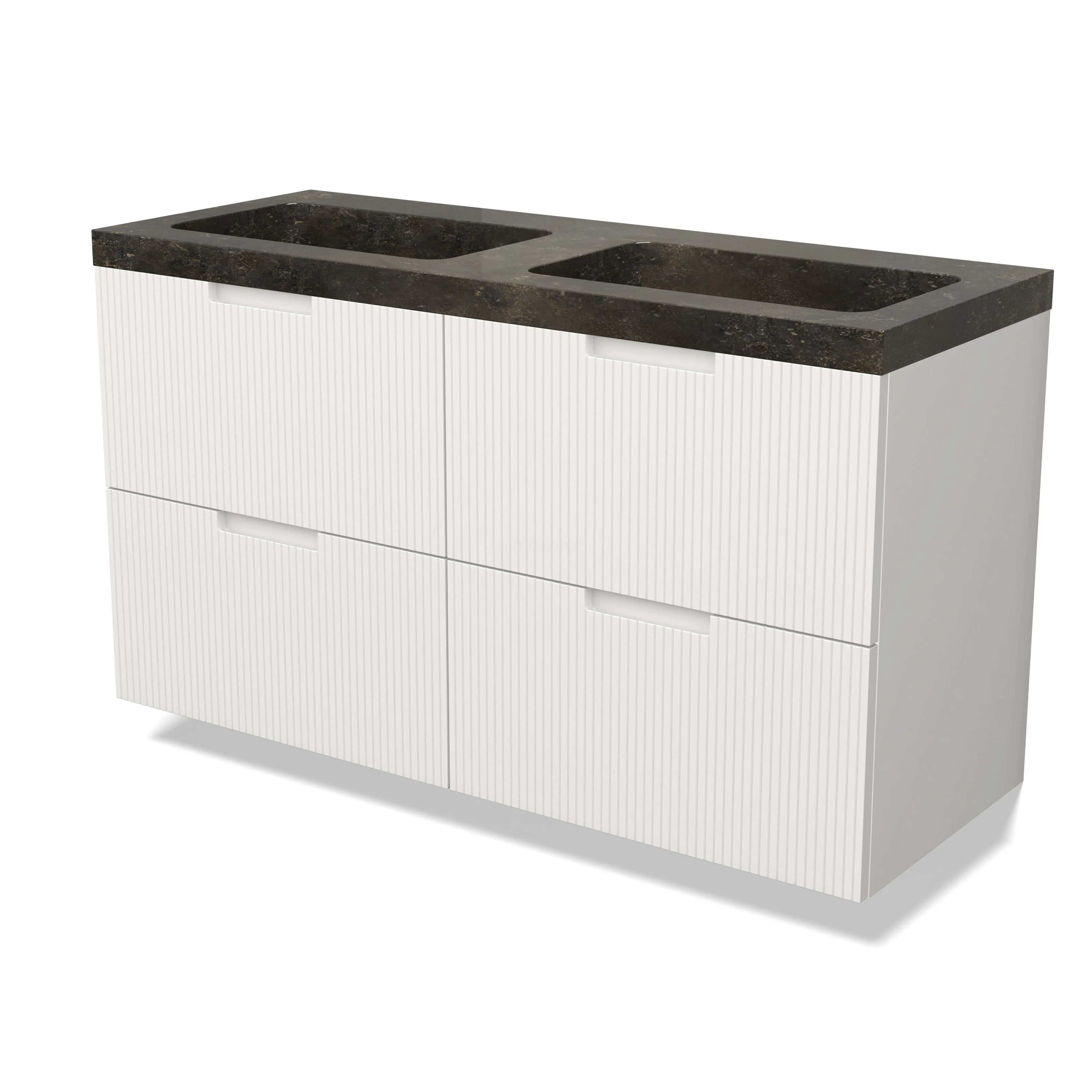 Modulo Bathroom furniture with sink | 120 cm Matte white Line front Natural stone 4 drawers