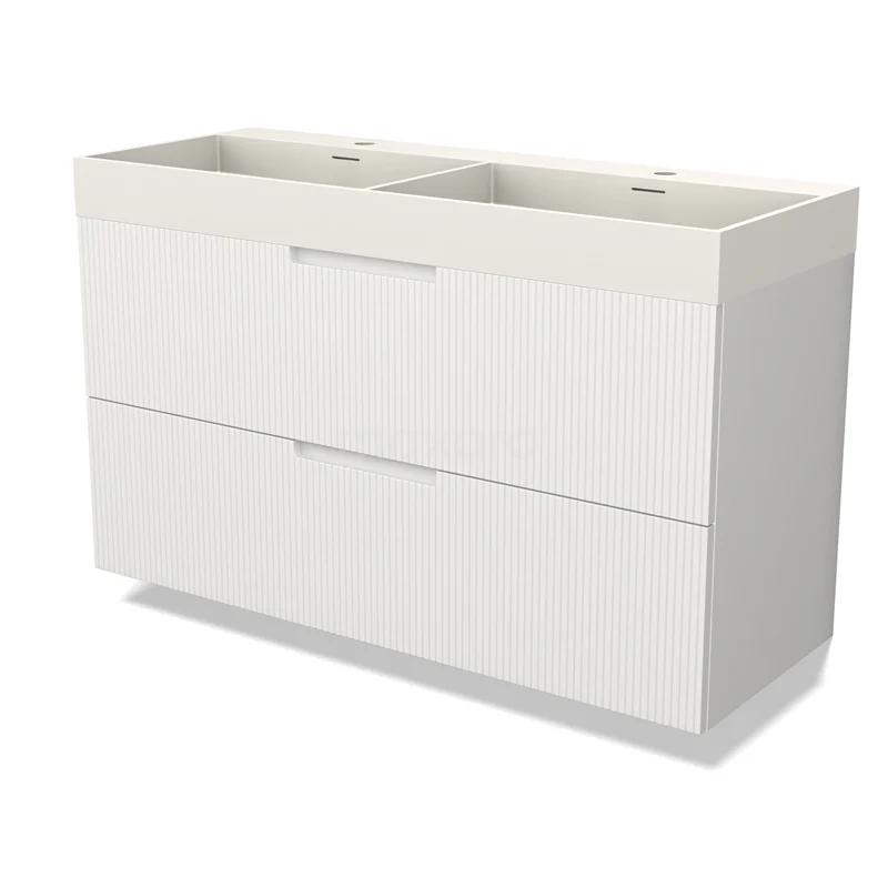 Modulo Bathroom furniture with sink | 120 cm Matte white Line front Solid surface 2 Stacked drawers