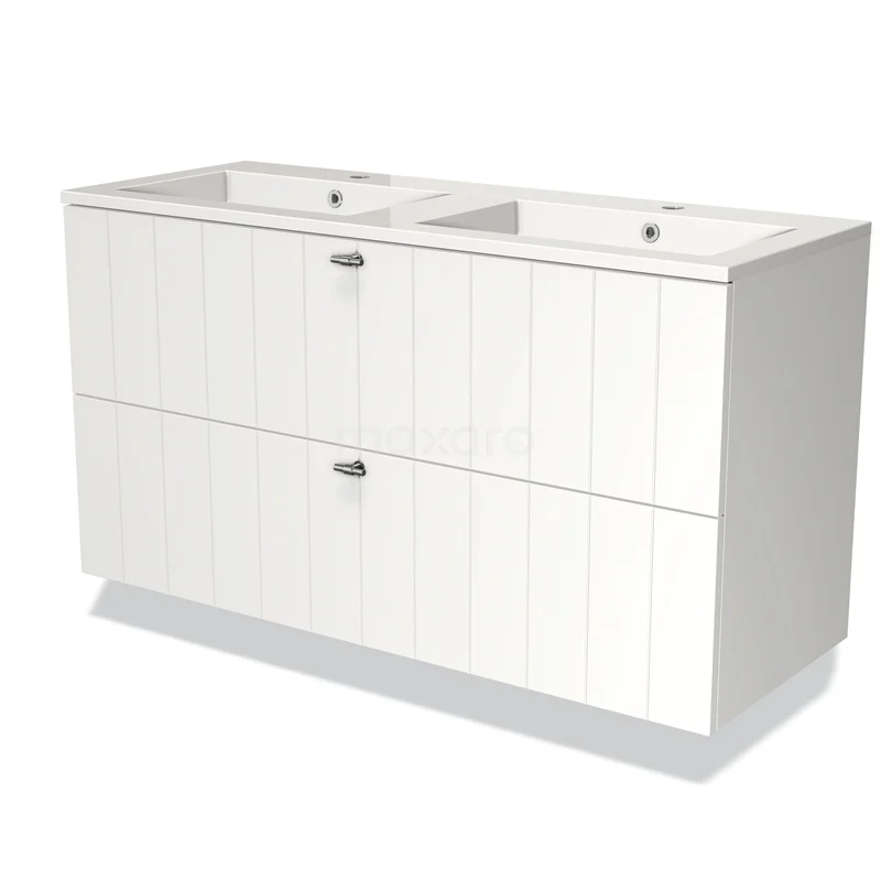 Modulo Bathroom furniture with sink | 120 cm Matte white Slat front Mineral marble 2 Stacked drawers