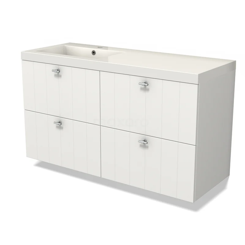 Modulo Bathroom furniture with sink | 120 cm Matte white Slat front Mineral marble 4 drawers BMW18-01068