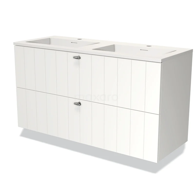 Modulo Bathroom furniture with sink | 120 cm Matte white Slat front Solid surface 2 Stacked drawers