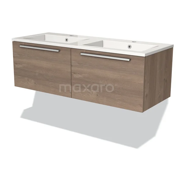 Modulo Bathroom furniture with sink | 120 cm Mid brown oak Flat front Mineral marble 2 Side-by-side drawers