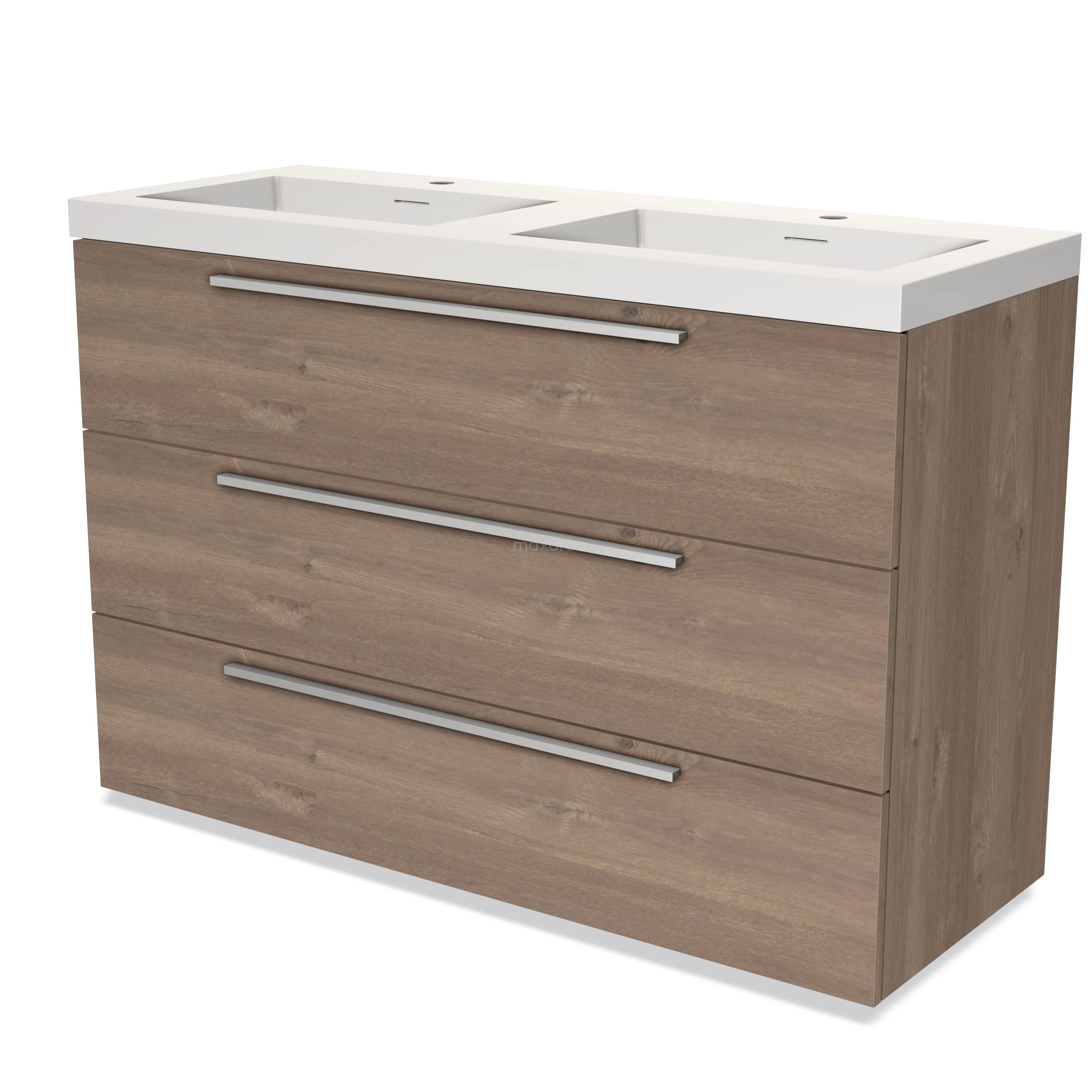Modulo Bathroom furniture with sink | 120 cm Mid brown oak Flat front Solid surface 3 drawers