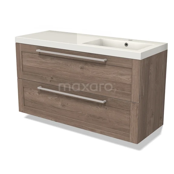 Modulo Bathroom furniture with sink | 120 cm Mid brown oak Frame front Mineral marble 2 Stacked drawers