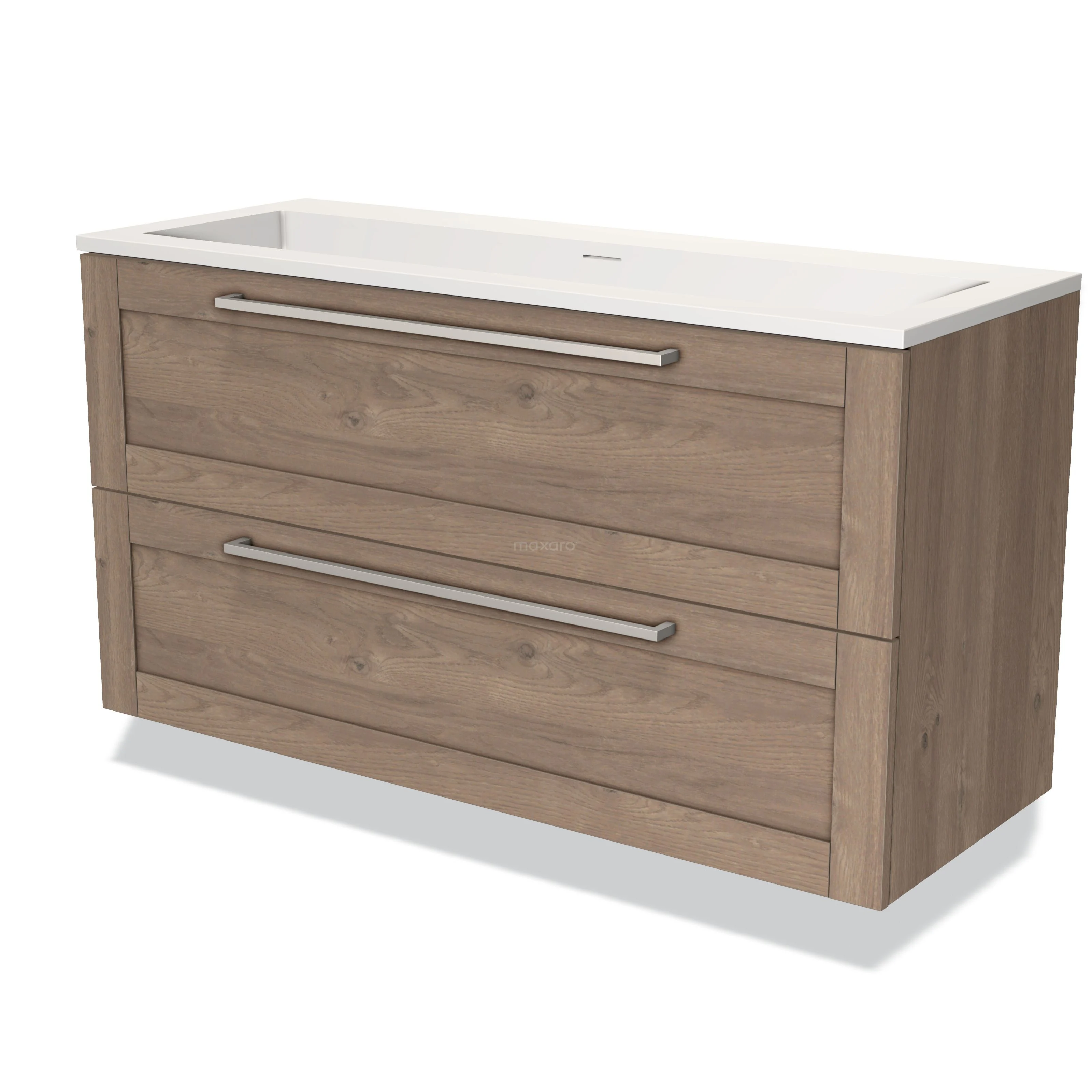 Modulo Bathroom furniture with sink | 120 cm Mid brown oak Frame front Solid surface 2 Stacked drawers