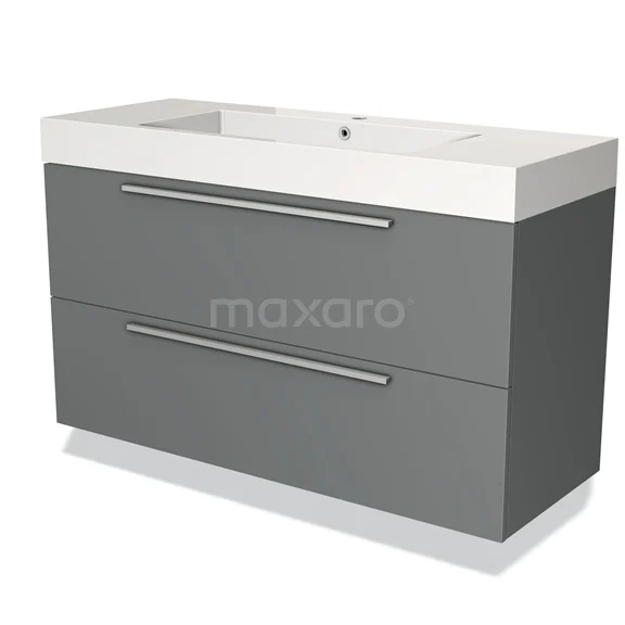 Modulo Bathroom furniture with sink | 120 cm Mid grey Flat front Mineral marble 2 Stacked drawers