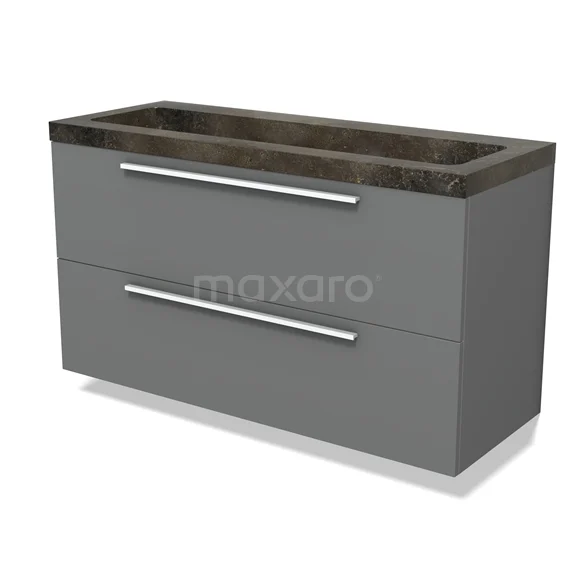 Modulo Bathroom furniture with sink | 120 cm Mid grey Flat front Natural stone 2 Stacked drawers