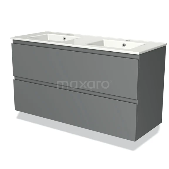 Modulo Bathroom furniture with sink | 120 cm Mid grey Handle-less front Ceramic 2 Stacked drawers