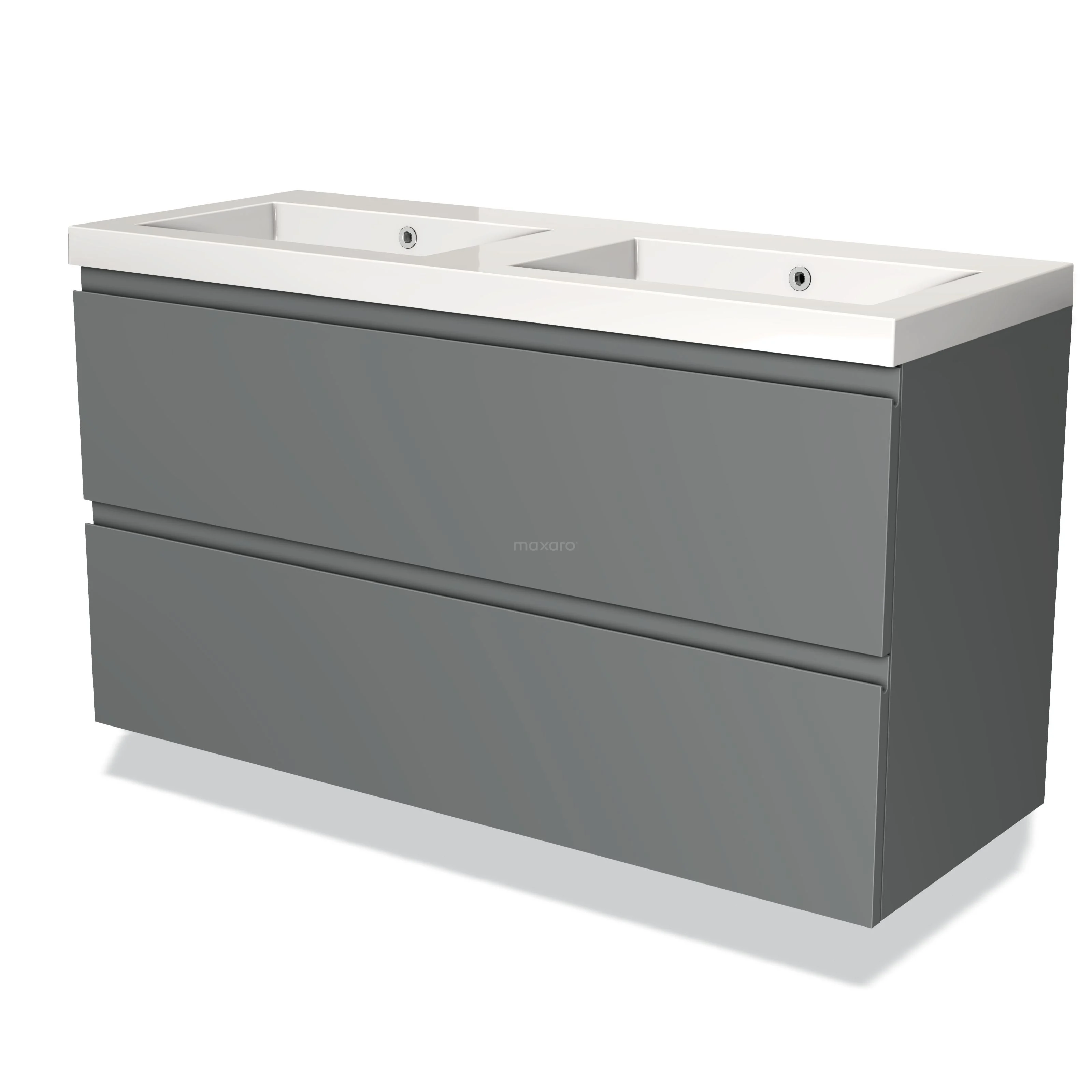 Modulo Bathroom furniture with sink | 120 cm Mid grey Handle-less front Mineral marble 2 Stacked drawers