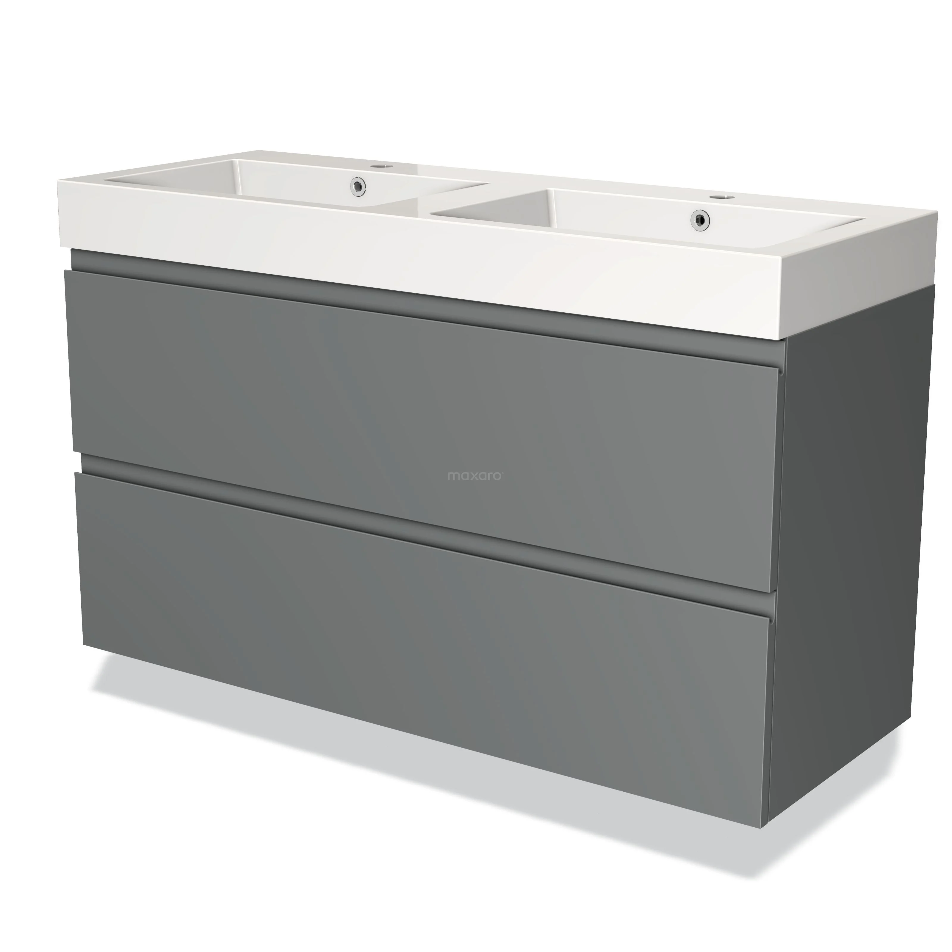 Modulo Bathroom furniture with sink | 120 cm Mid grey Handle-less front Mineral marble 2 Stacked drawers