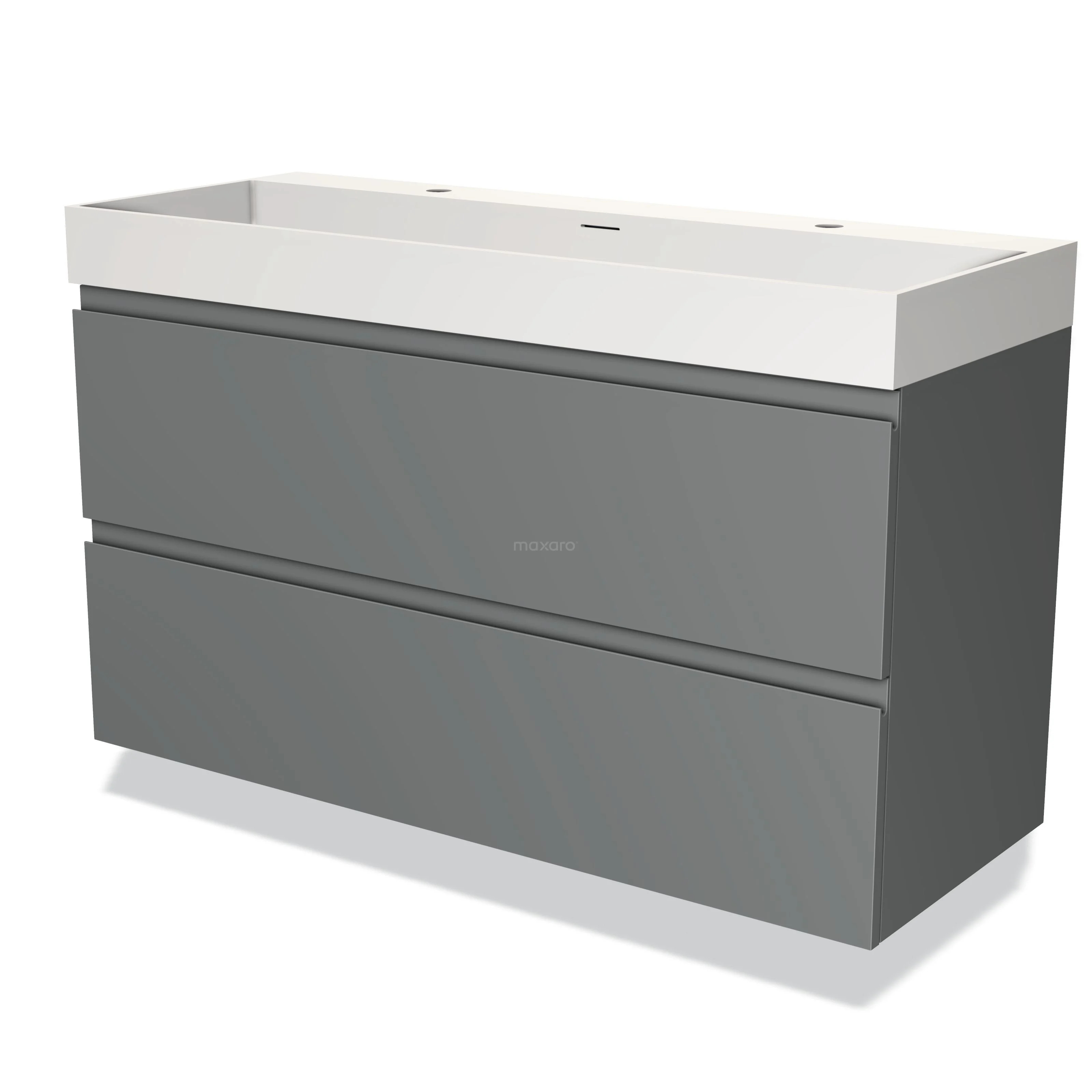 Modulo Bathroom furniture with sink | 120 cm Mid grey Handle-less front Solid surface 2 Stacked drawers