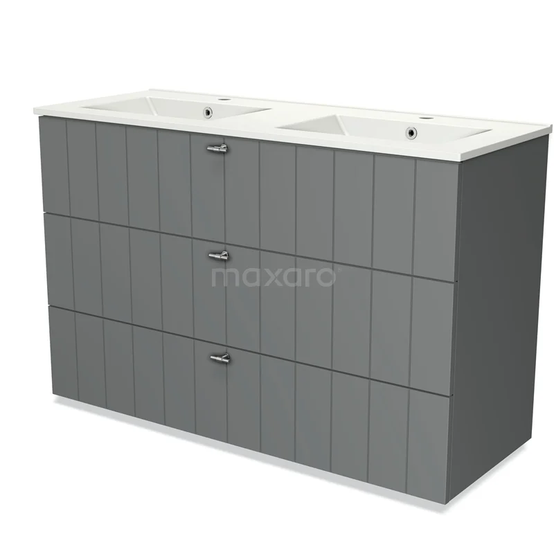Modulo Bathroom furniture with sink | 120 cm Mid grey Slat front Ceramic 3 drawers