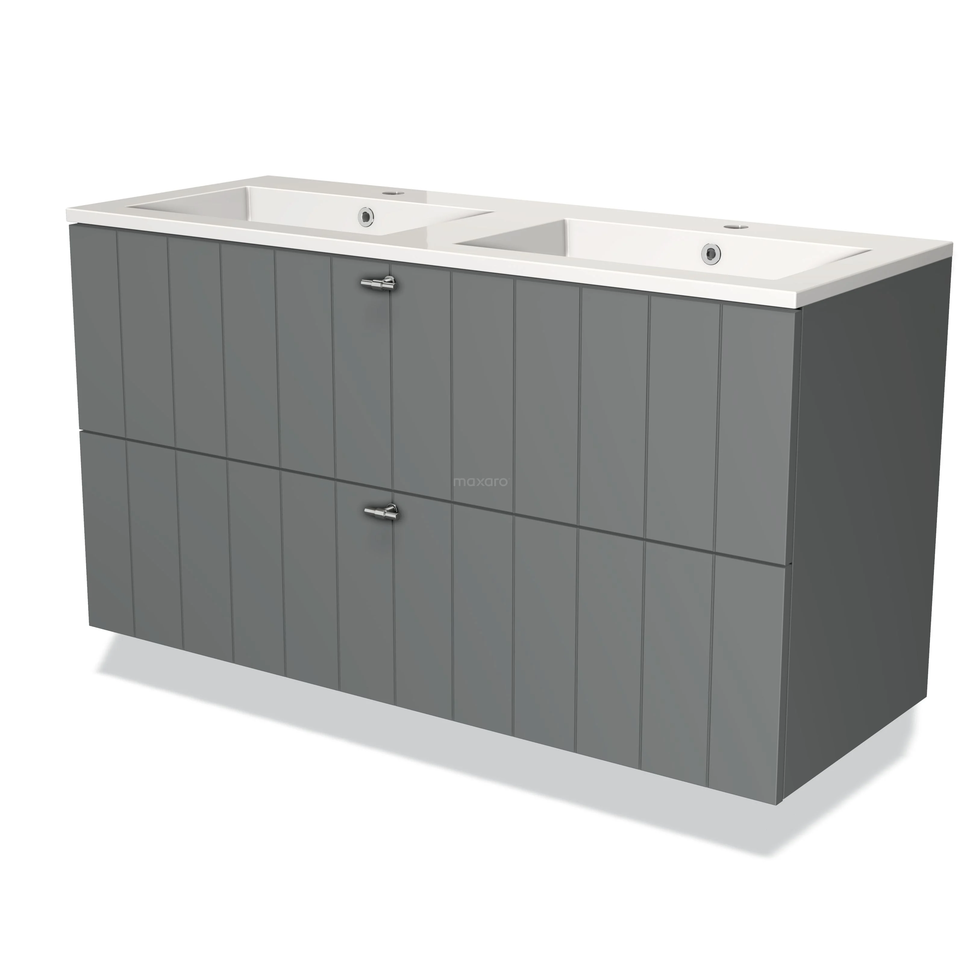 Modulo Bathroom furniture with sink | 120 cm Mid grey Slat front Mineral marble 2 Stacked drawers