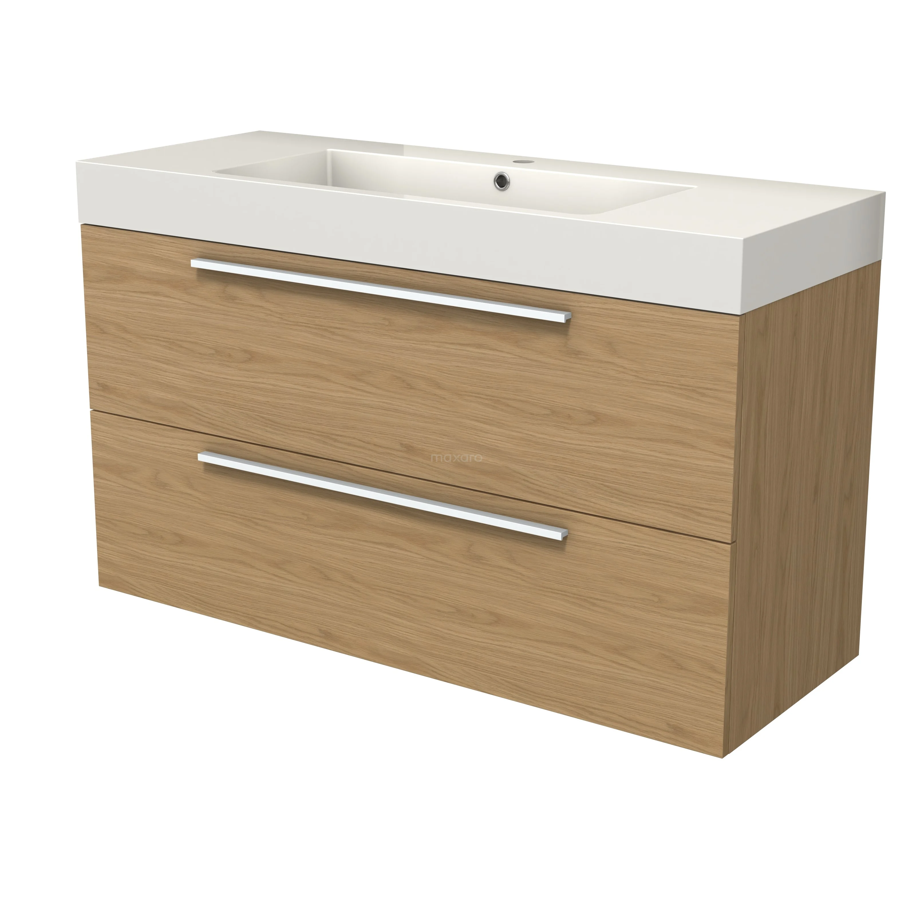 Modulo Bathroom furniture with sink | 120 cm Natural veneer Flat front Mineral marble 2 Stacked drawers
