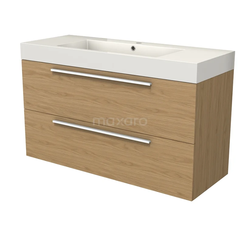 Modulo Bathroom furniture with sink | 120 cm Natural veneer Flat front Mineral marble 2 Stacked drawers BMW17-05292