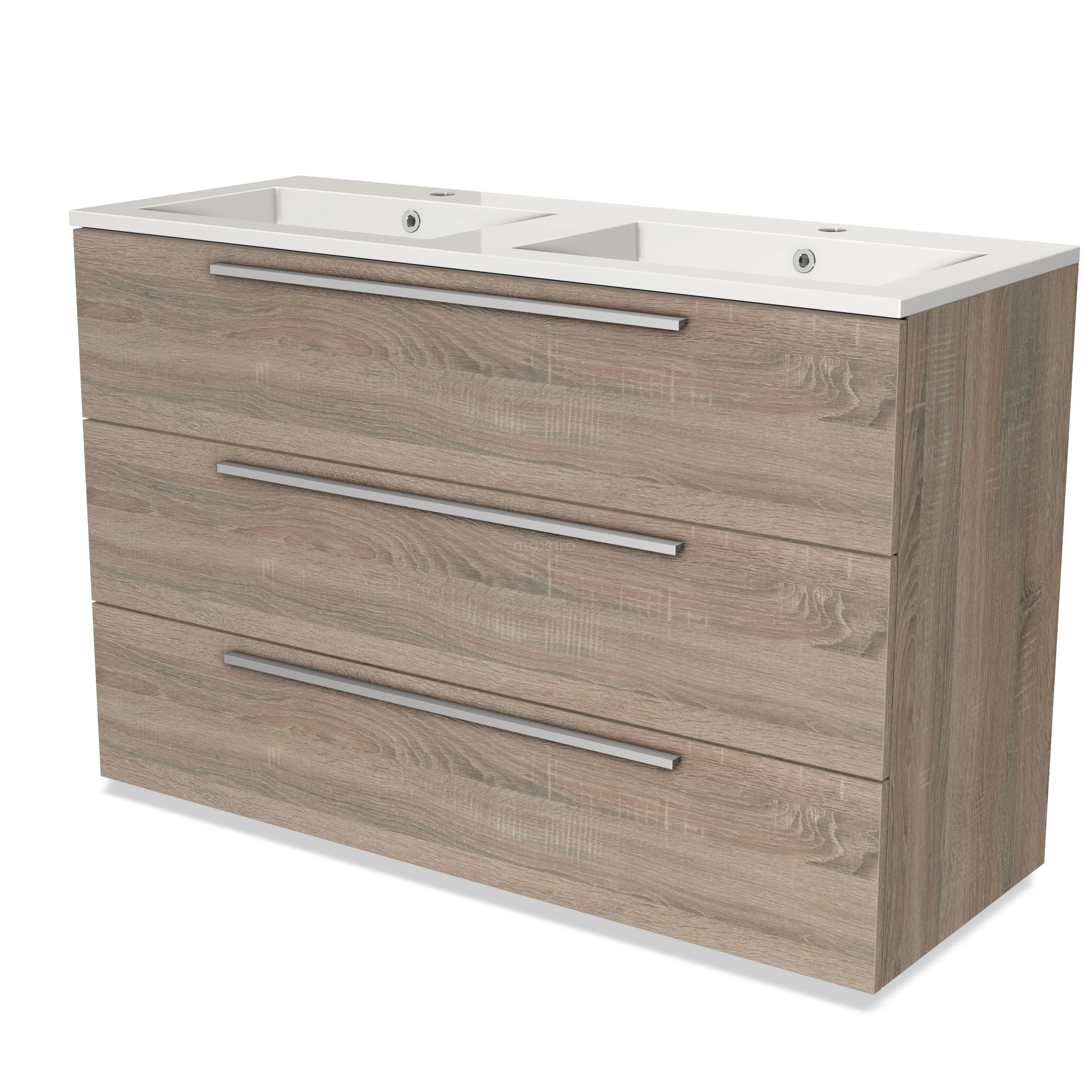 Stylish design The stylish design makes this bathroom unit the eye-catcher of your bathroom. The base cabinet features a flat front and has an oak finish. This beautiful oak look creates a warm atmosphere in your bathroom interior. In addition, the flat front provides a timeless touch.