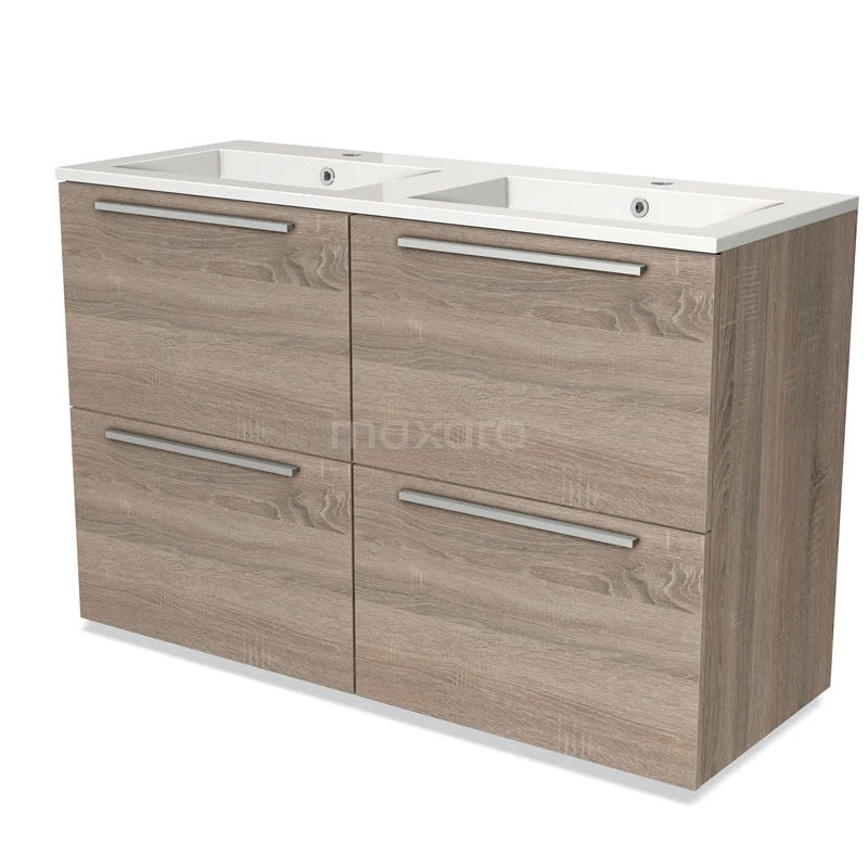 Modulo Bathroom furniture with sink | 120 cm Oak Flat front Mineral marble 4 high drawers