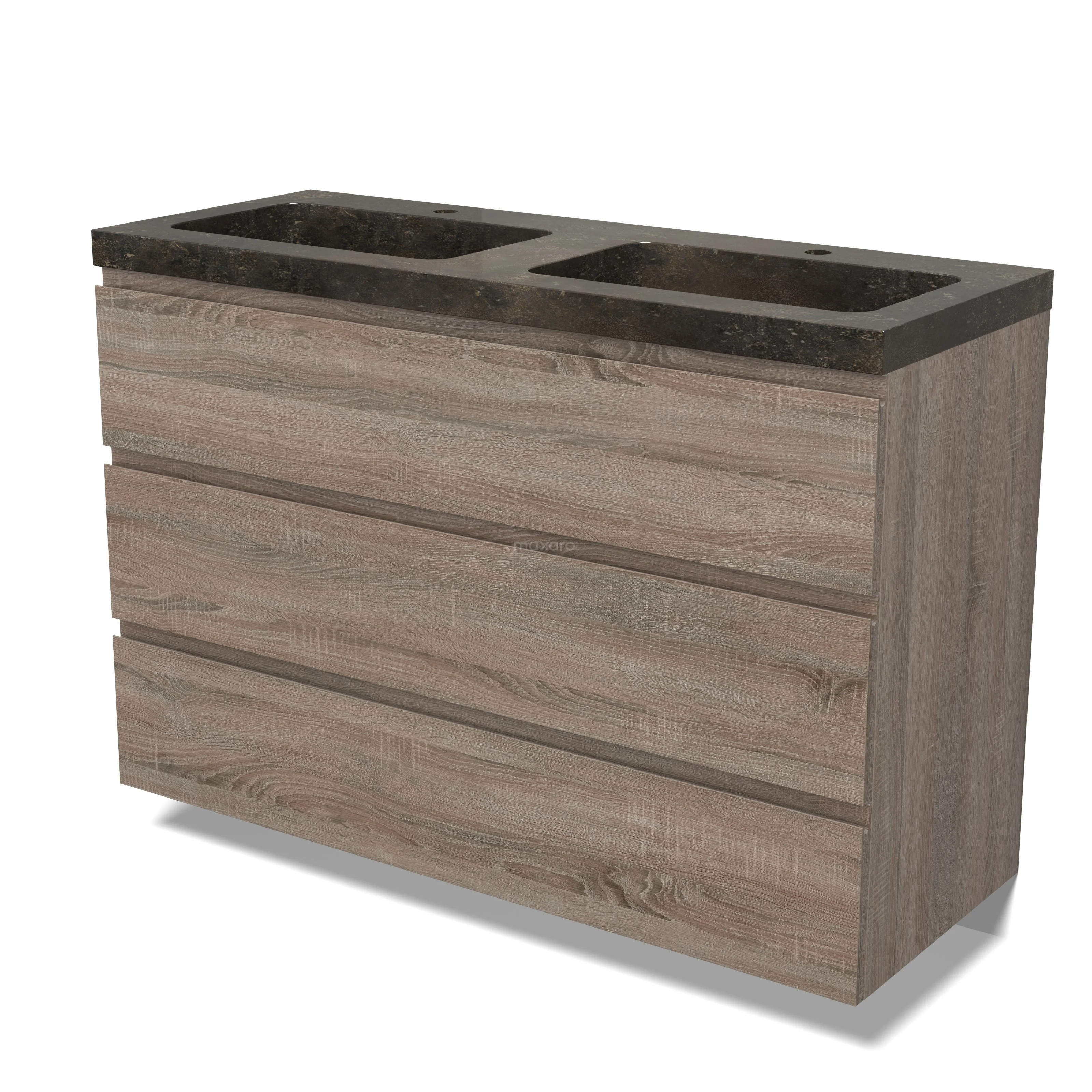 Modulo Bathroom furniture with sink | 120 cm Oak Handle-less front Natural stone 3 drawers