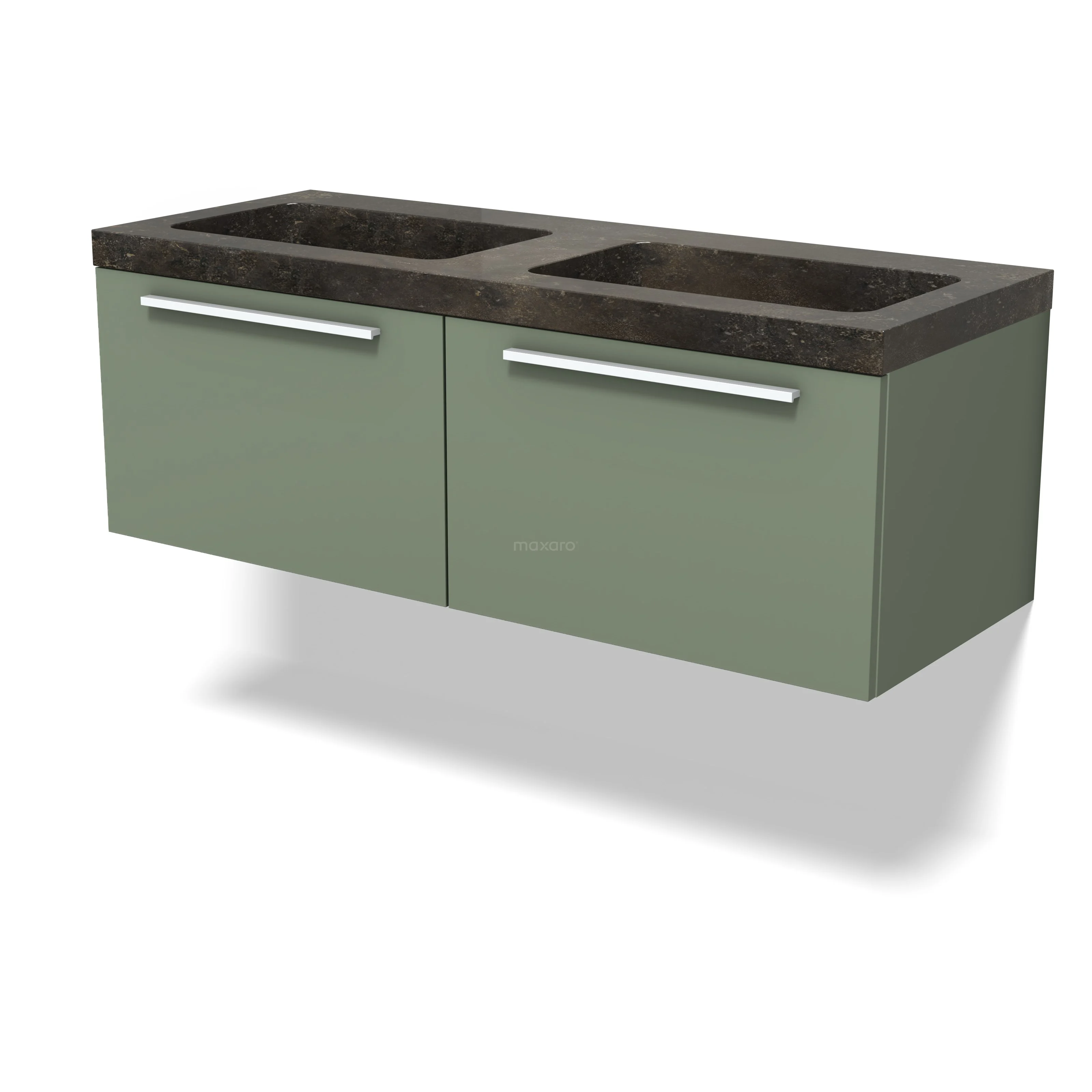 Modulo Bathroom furniture with sink | 120 cm Sage green Flat front Natural stone 2 Side-by-side drawers