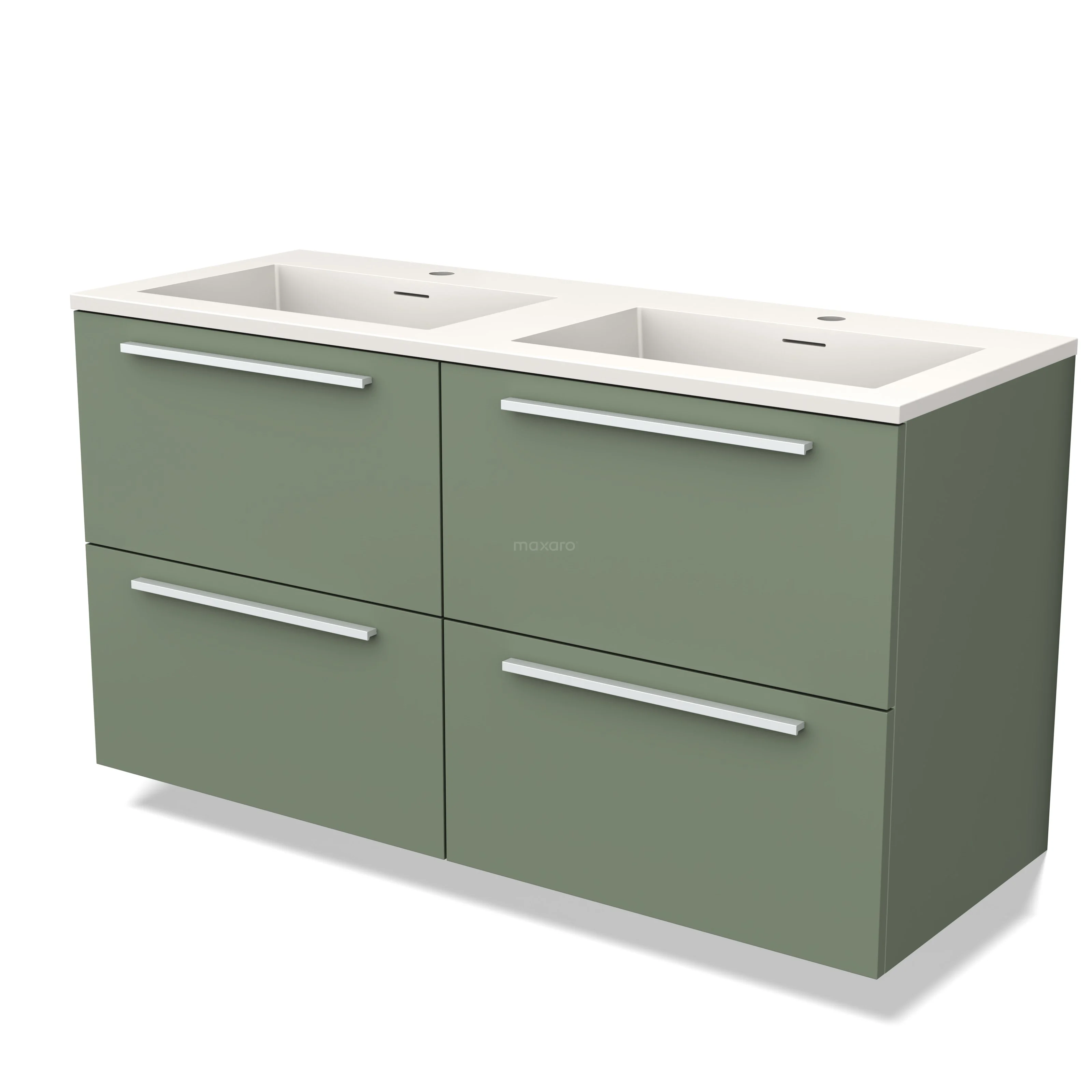 Modulo Bathroom furniture with sink | 120 cm Sage green Flat front Solid surface 4 drawers