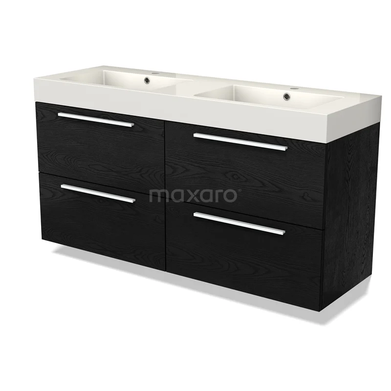 Modulo Bathroom furniture with sink | 140 cm Black oak Flat front Mineral marble 4 drawers
