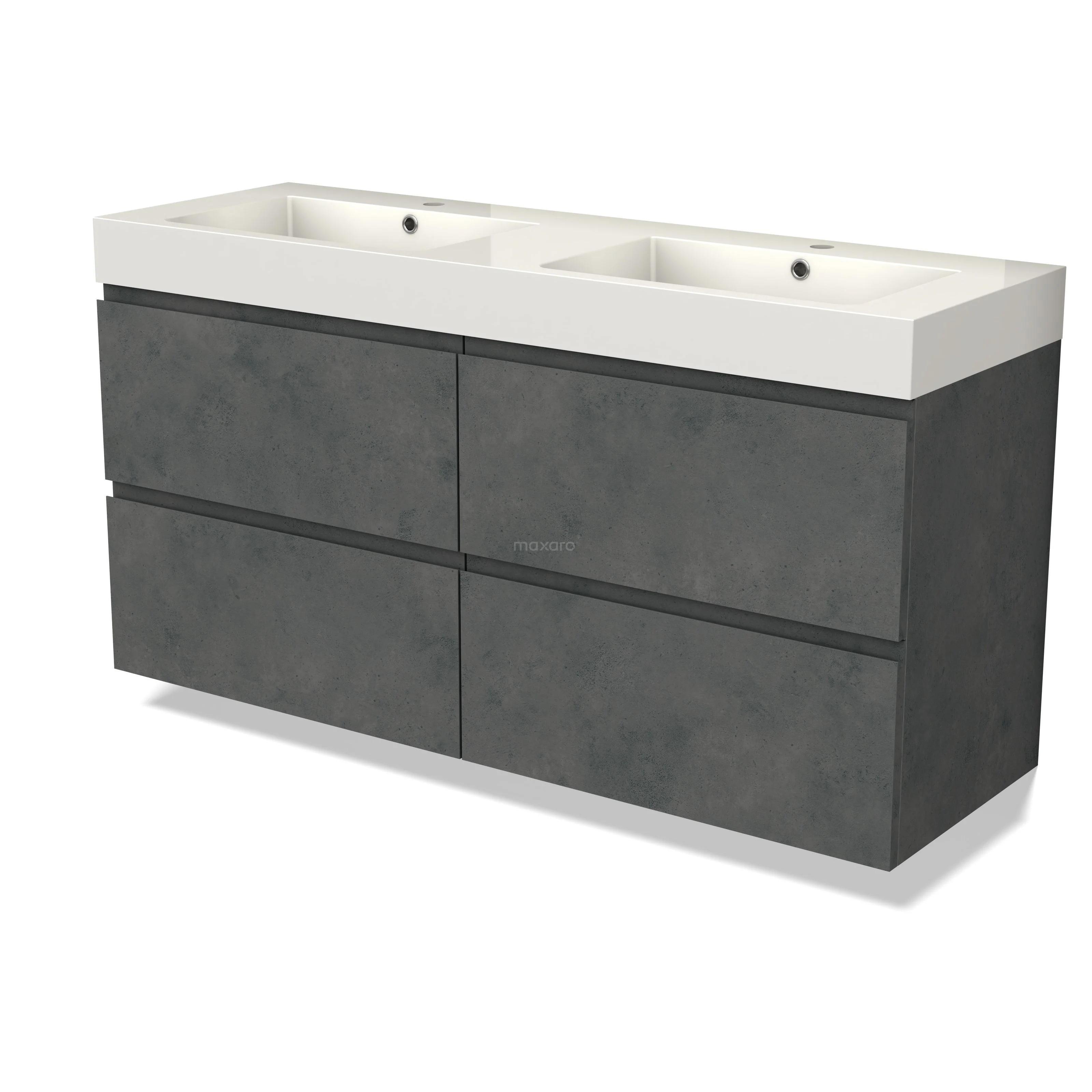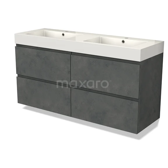 Modulo Bathroom furniture with sink | 140 cm Dark grey concrete Handle-less front Mineral marble 4 drawers