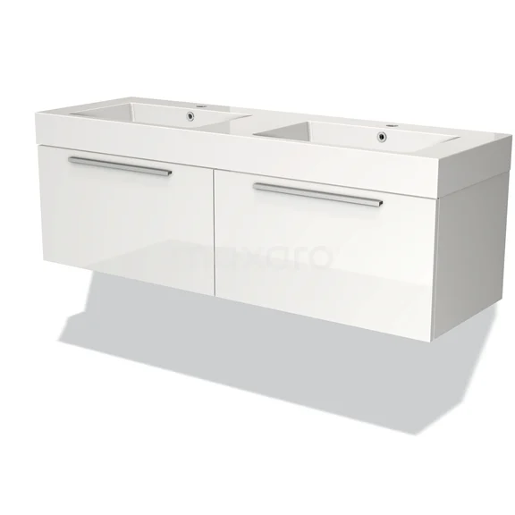 Modulo Bathroom furniture with sink | 140 cm High-gloss white Flat front Mineral marble 2 Side-by-side drawers