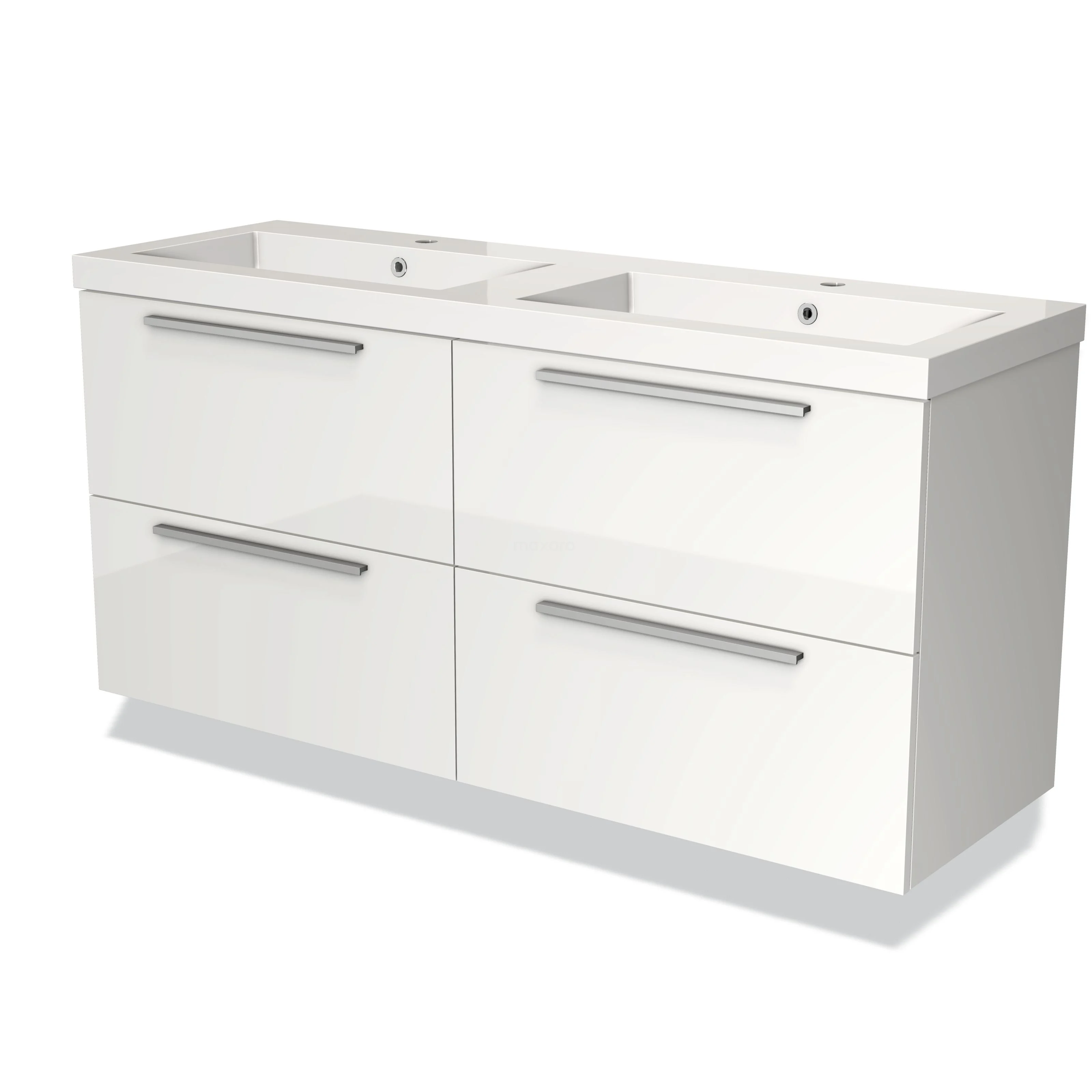 Modulo Bathroom furniture with sink | 140 cm High-gloss white Flat front Mineral marble 4 drawers
