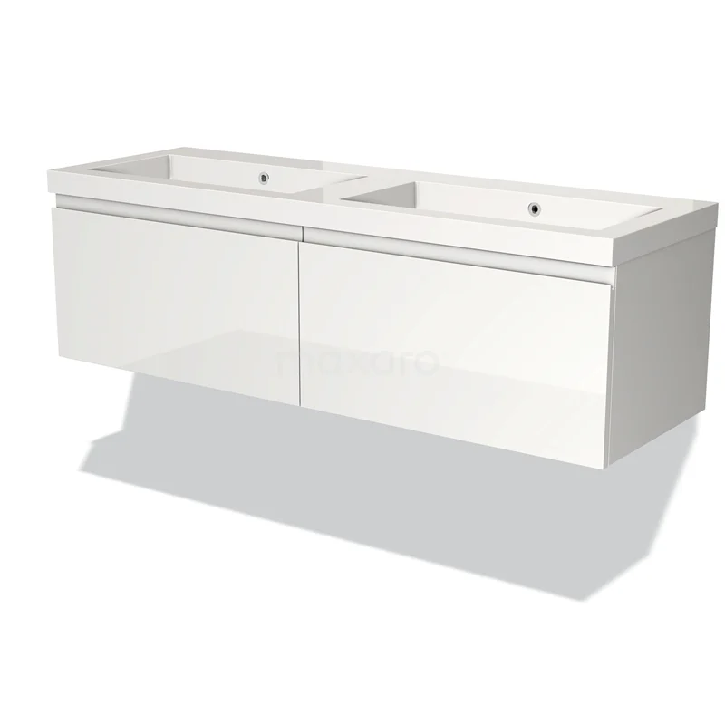 Modulo Bathroom furniture with sink | 140 cm High-gloss white Handle-less front Mineral marble 2 Side-by-side drawers