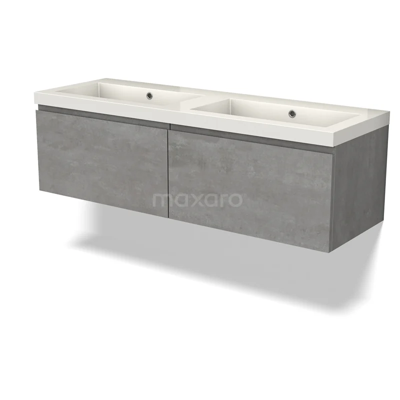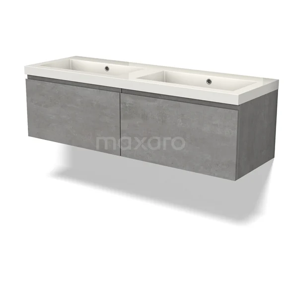 Modulo Bathroom furniture with sink | 140 cm Light grey concrete Handle-less front Mineral marble 2 Side-by-side drawers