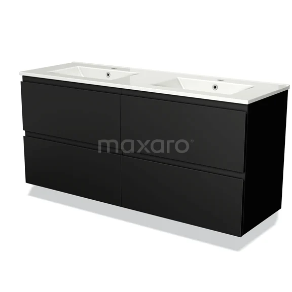 Modulo Bathroom furniture with sink | 140 cm Matte black Handle-less front Ceramic 4 drawers