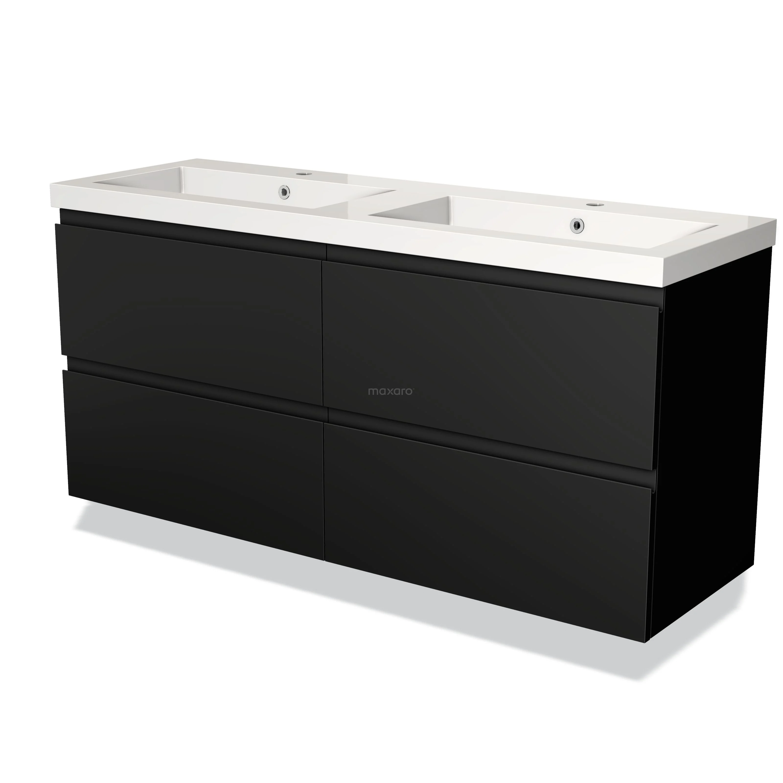 Modulo Bathroom furniture with sink | 140 cm Matte black Handle-less front Mineral marble 4 drawers