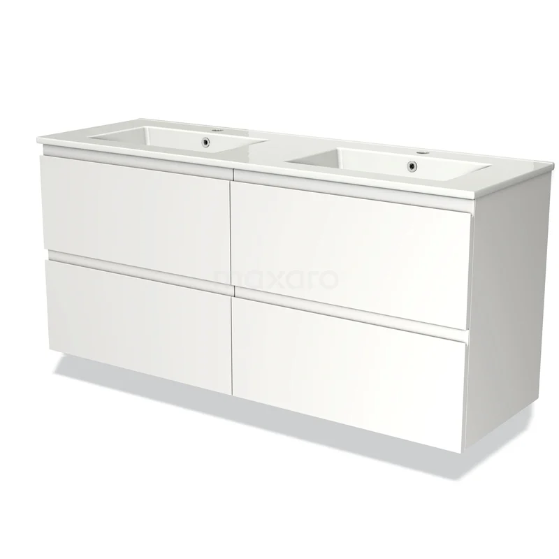 Modulo Bathroom furniture with sink | 140 cm Matte white Handle-less front Ceramic 4 drawers