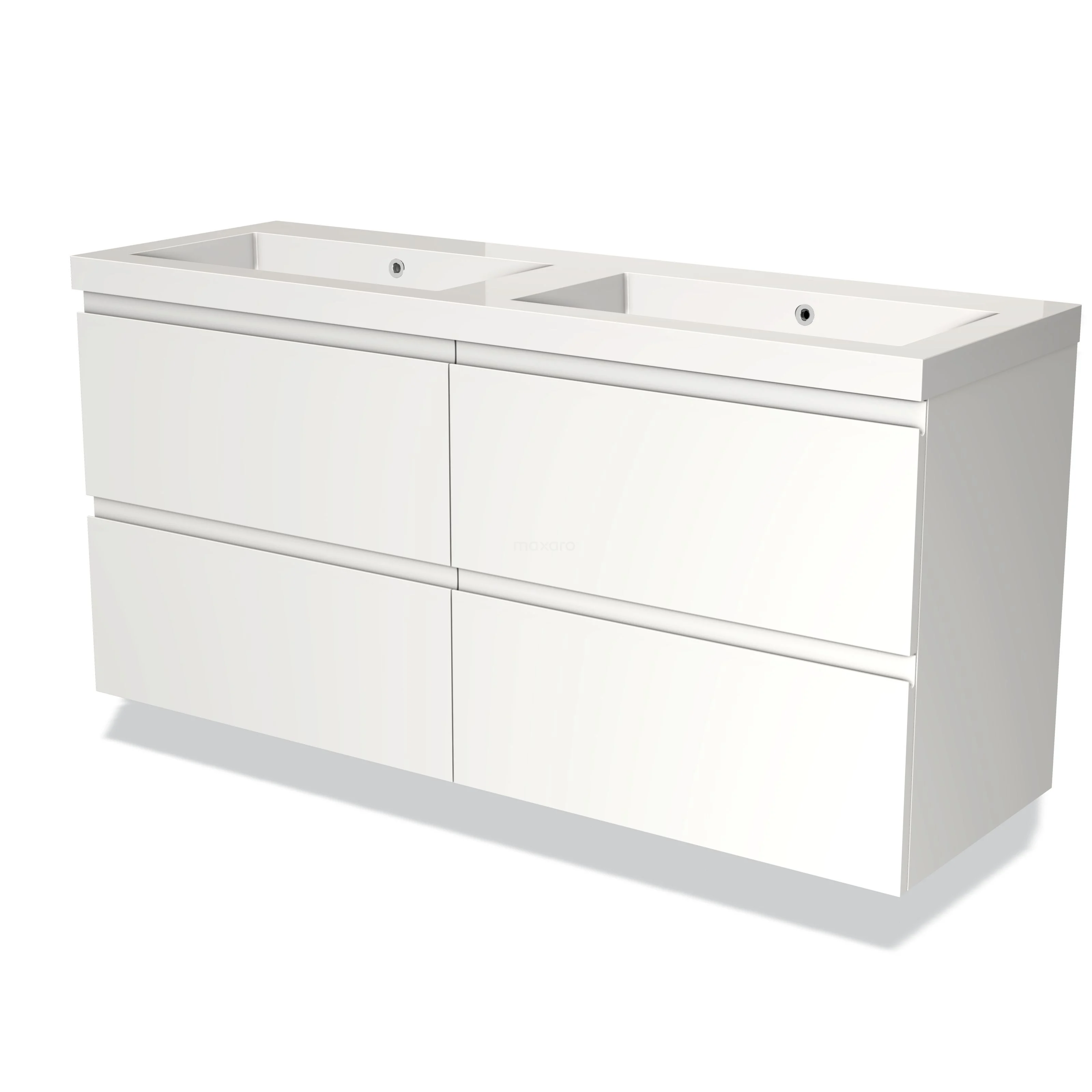 Modulo Bathroom furniture with sink | 140 cm Matte white Handle-less front Mineral marble 4 drawers