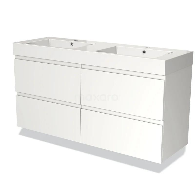 Modulo Bathroom furniture with sink | 140 cm Matte white Handle-less front Mineral marble 4 drawers