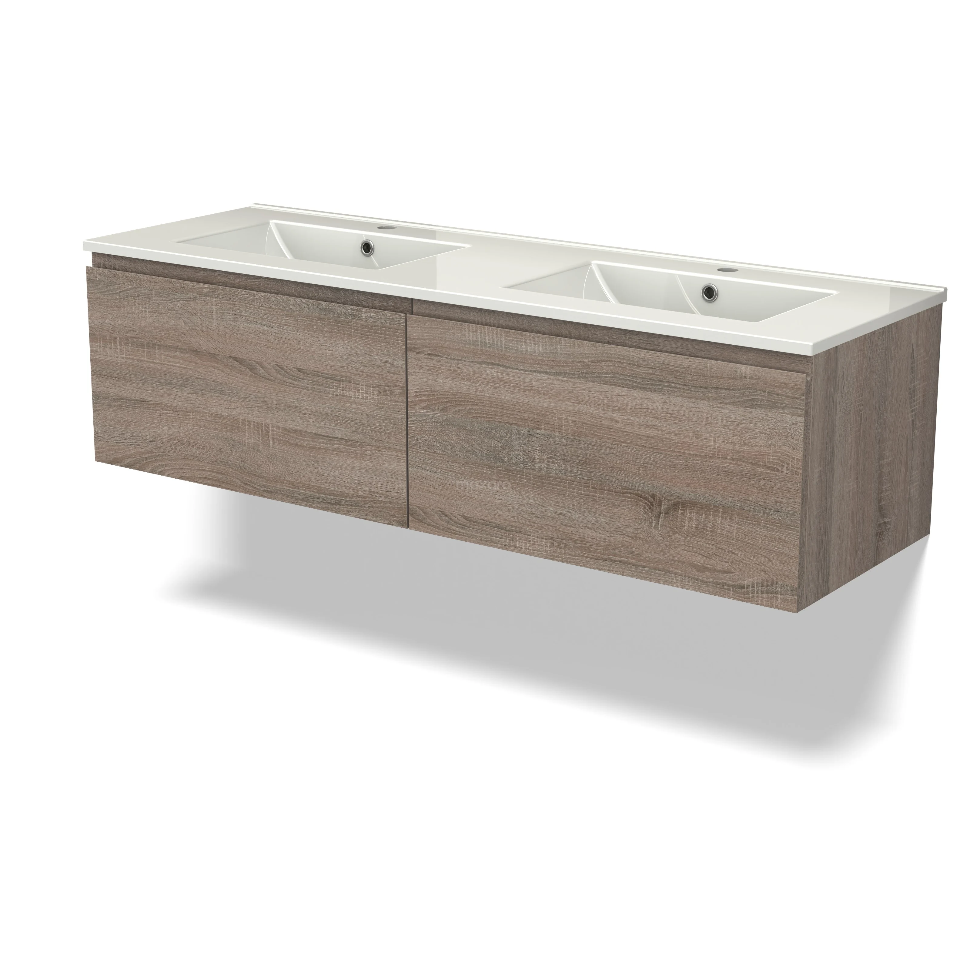 Modulo Bathroom furniture with sink | 140 cm Oak Handle-less front Ceramic 2 Side-by-side drawers