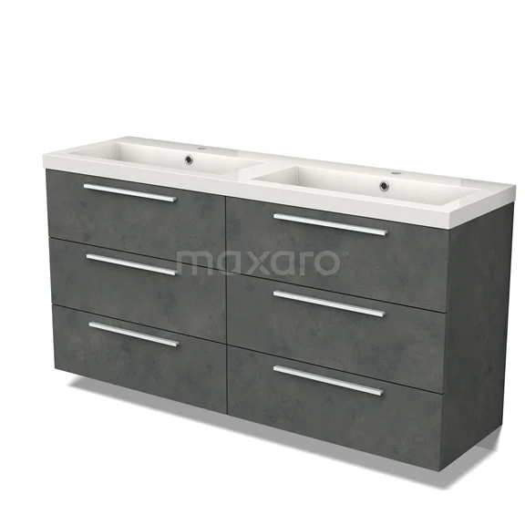 Modulo Bathroom furniture with sink | 160 cm Dark grey concrete Flat front Mineral marble 6 drawers