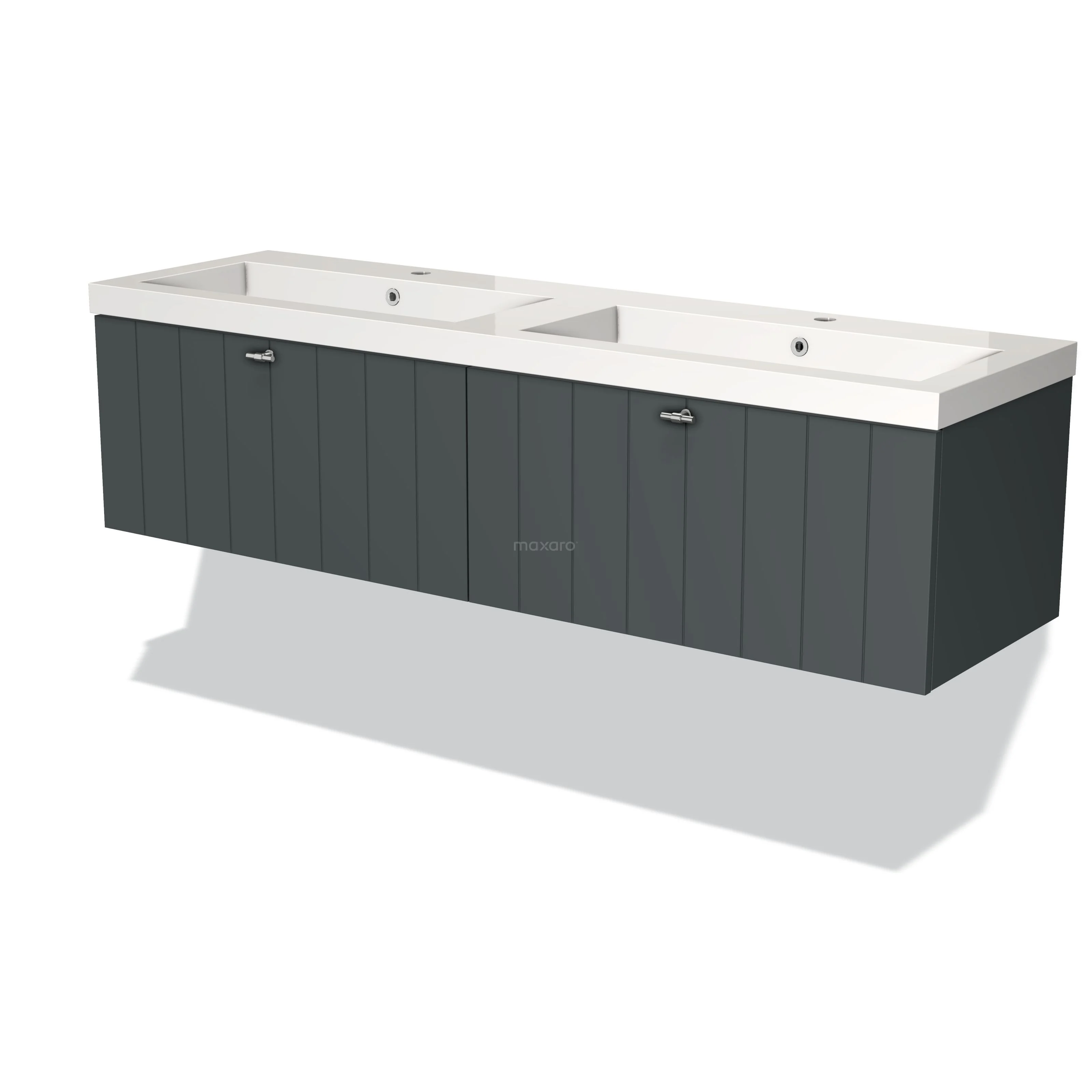 Modulo Bathroom furniture with sink | 160 cm Dark grey Slat front Mineral marble 2 Side-by-side drawers