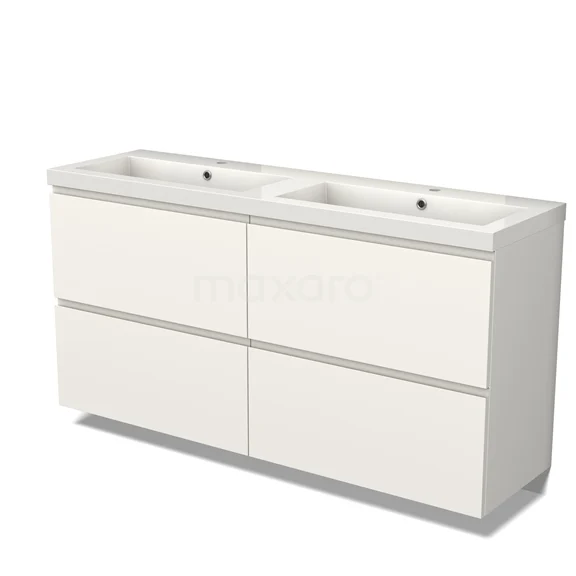 Modulo Bathroom furniture with sink | 160 cm Matte white Handle-less front Mineral marble 4 high drawers