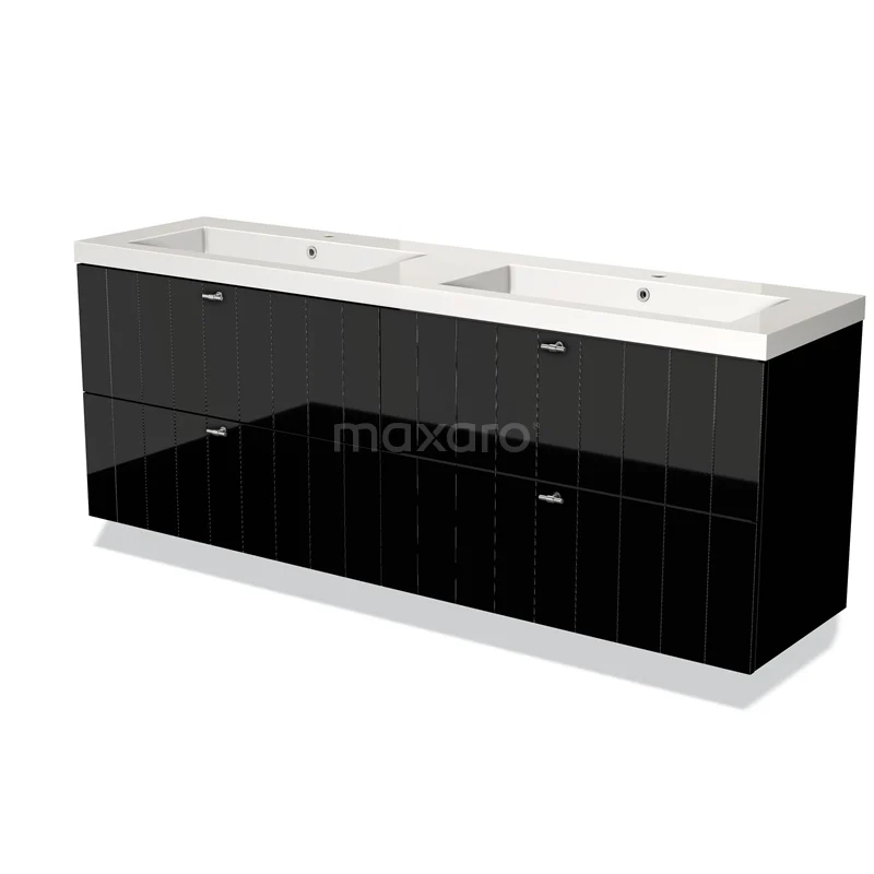 Modulo Bathroom furniture with sink | 180 cm High-gloss black Slat front Mineral marble 4 drawers