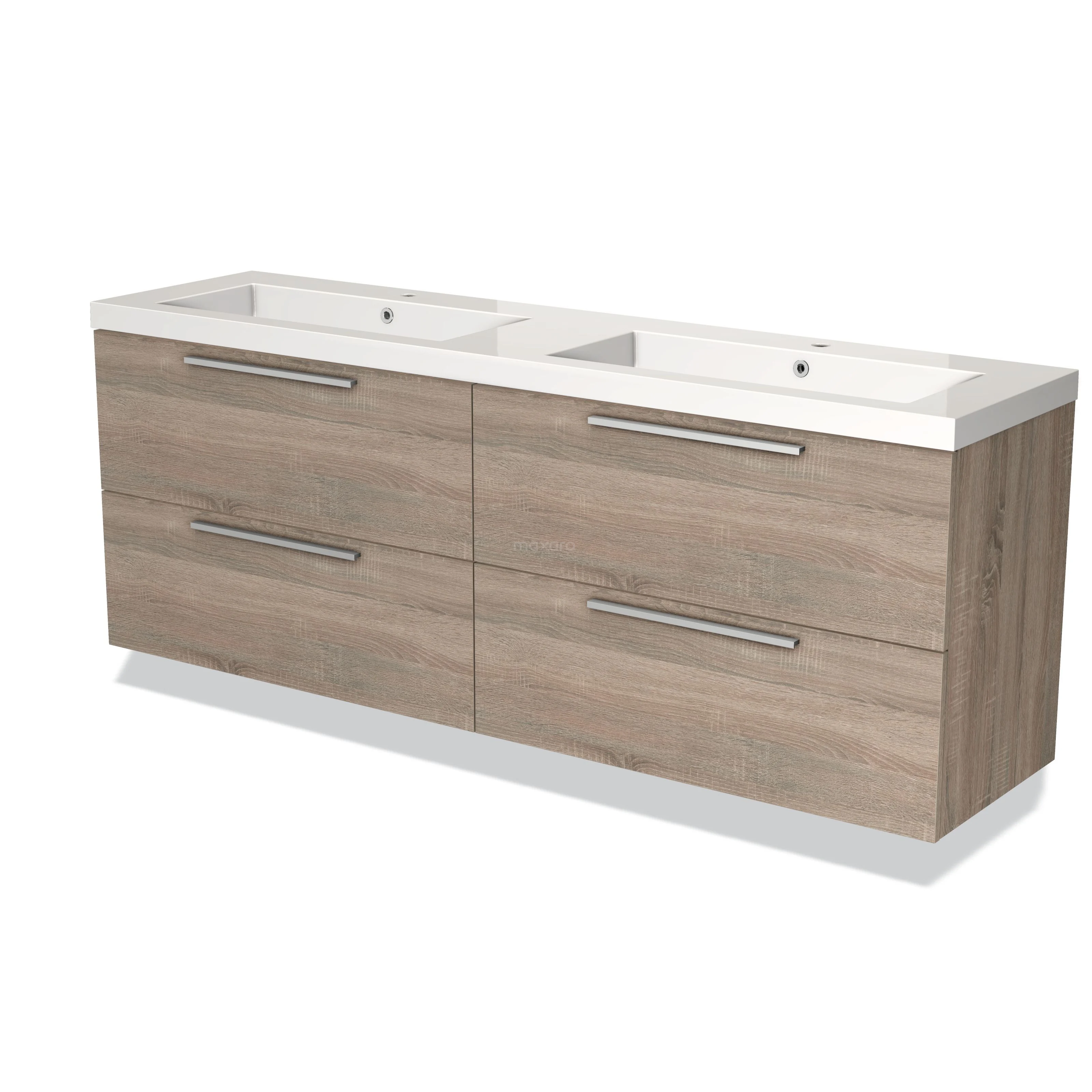Modulo Bathroom furniture with sink | 180 cm Oak Flat front Mineral marble 4 drawers