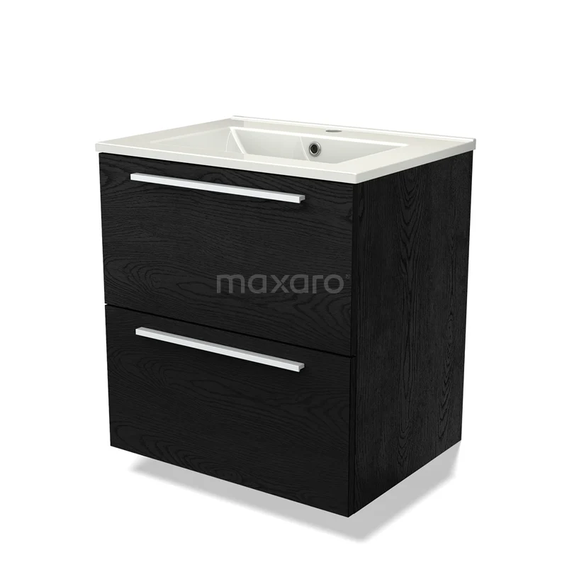 Modulo Bathroom furniture with sink | 60 cm Black oak Flat front Ceramic 2 Stacked drawers
