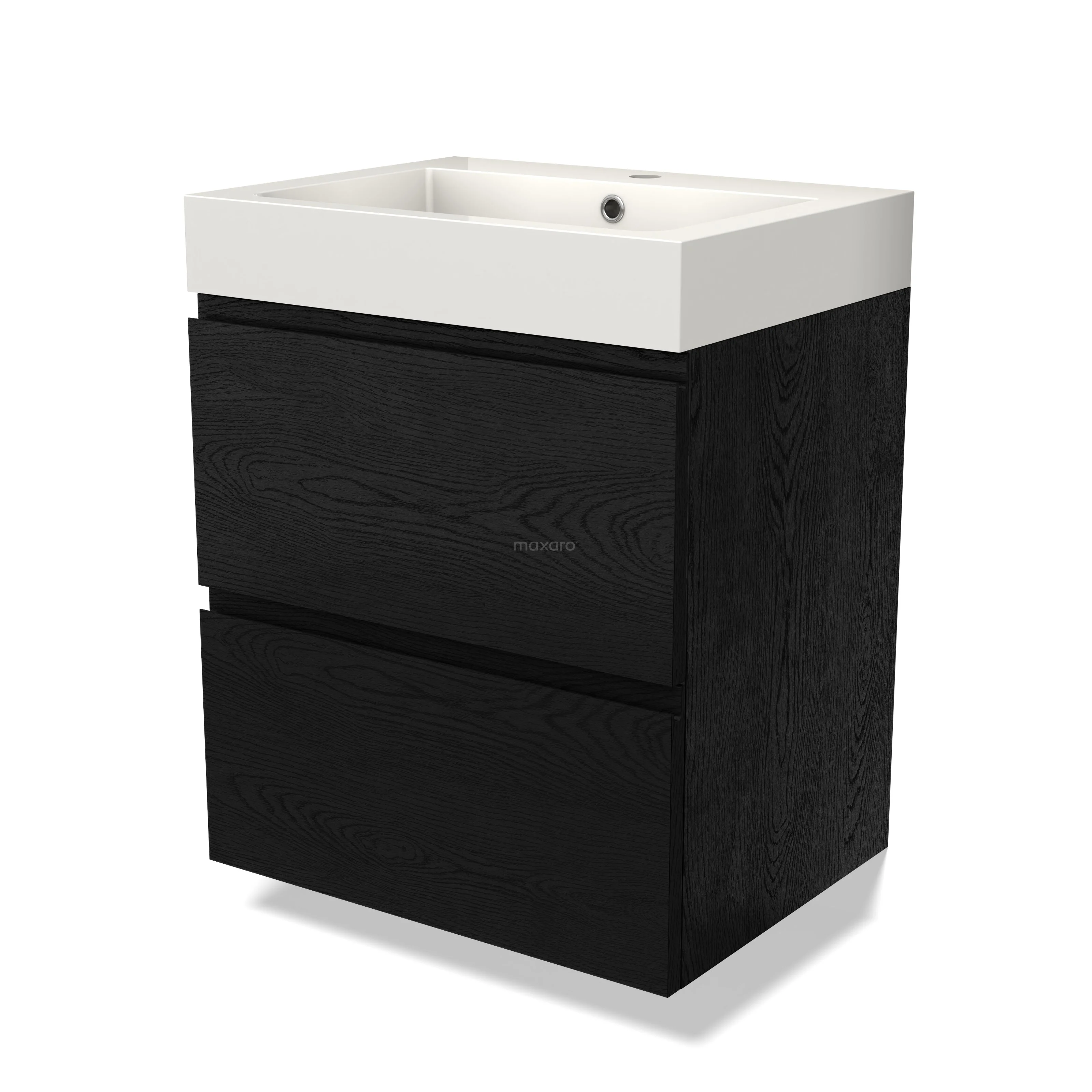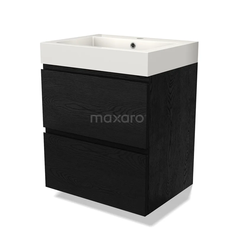 Modulo Bathroom furniture with sink | 60 cm Black oak Handle-less front Mineral marble 2 Stacked drawers